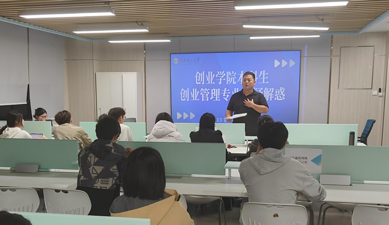 At the start of the session, Professor Liu systematically outlined the diverse career paths available to Entrepreneurship Management graduates by presenting case studies of exemplary alumni. Next, in response to students’ widespread concerns about internships, he drew on the college’s resources to provide detailed guidance on choosing industries and building the necessary skills. He advised students to “anchor your career track in your interests and match your abilities to market demands,” and he assured them that the college will continue to integrate high-quality internship opportunities and build practical platforms for hands-on experience. Finally, Professor Liu tackled the deeper questions students had raised—such as the core strengths of the Entrepreneurship Management major—offering an in-depth analysis from three perspectives: the program’s training objectives, its curriculum structure, and its distinctive methodological approach. He encouraged all attendees to broaden their learning and cultivate their own core competencies.