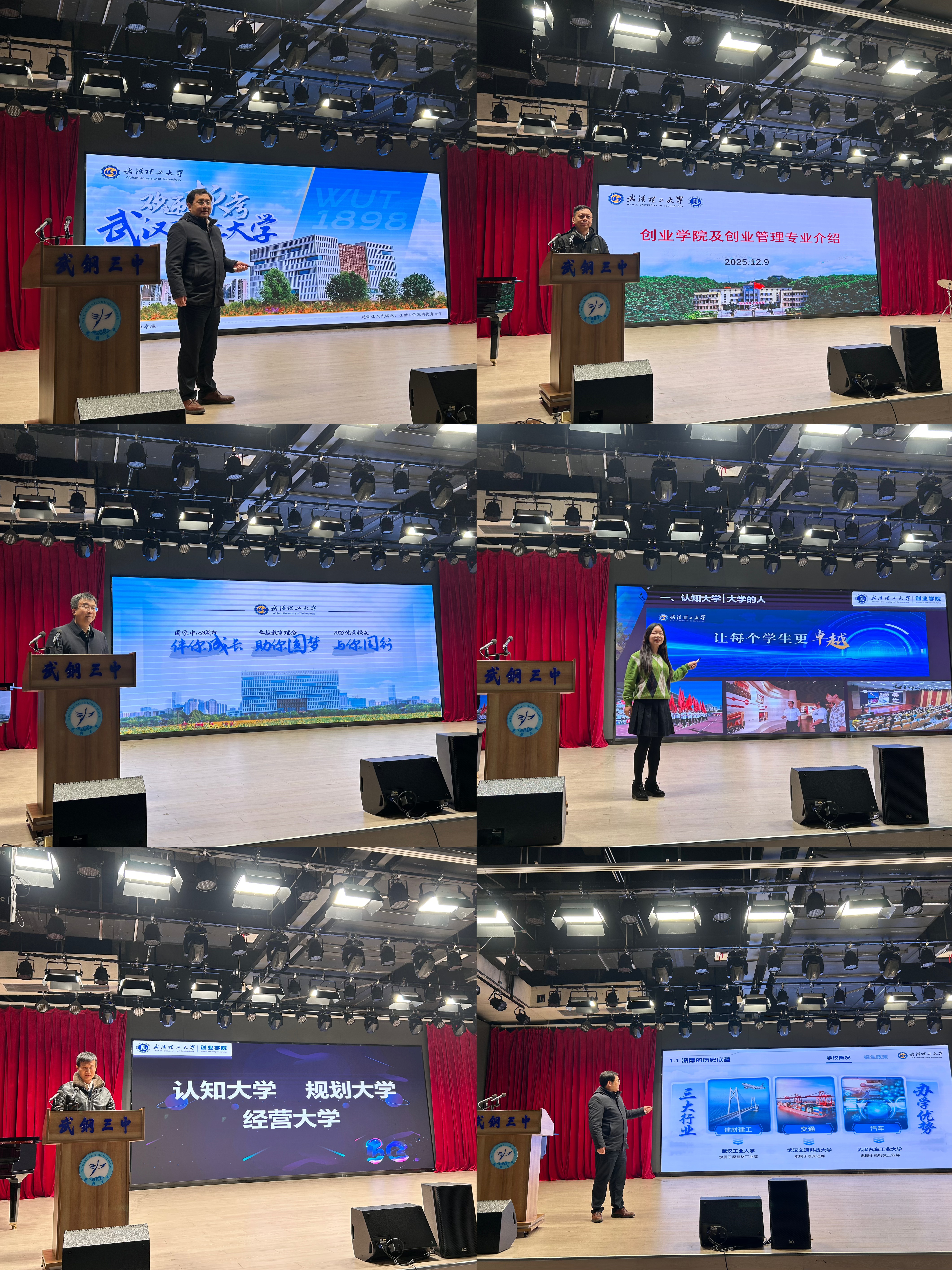 为进一步深化与重点中学的人才培养衔接合作,精准传递学校招生政策与办学特色,12月9日上午,武汉理工大学创业学院院长喻平、副院长彭华涛、副院长艾靓与创业管理系部分教师、辅导员等,共同前往武钢三中开展招生宣传工作。