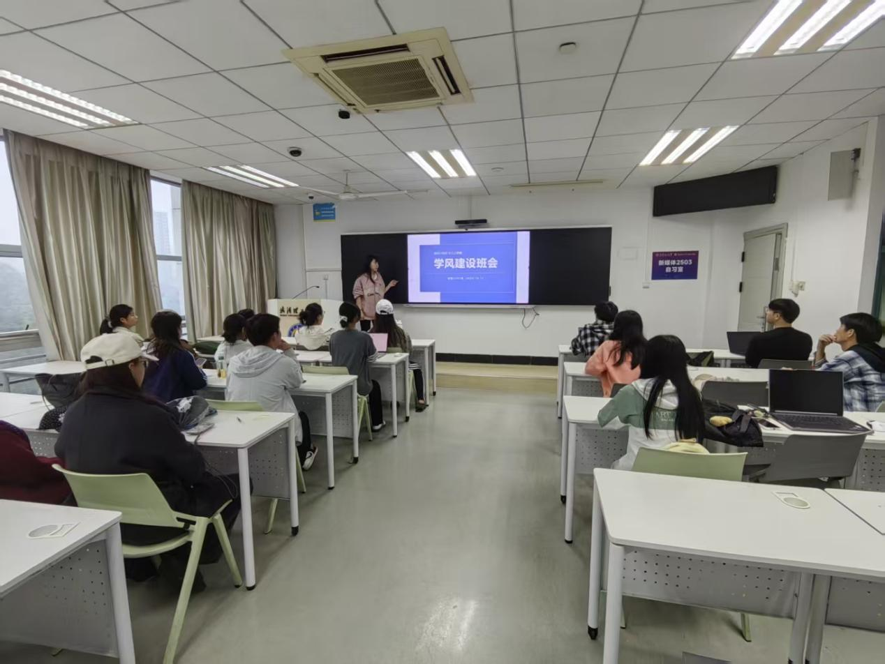 2025年10月15日,创业管理2301班在博学北楼508教室成功举办学风建设班会。本次班会由班长姜歆睿主持,旨在对同学们过去一学期的学习情况进行全面分析,并有针对性地提出未来学习建议。