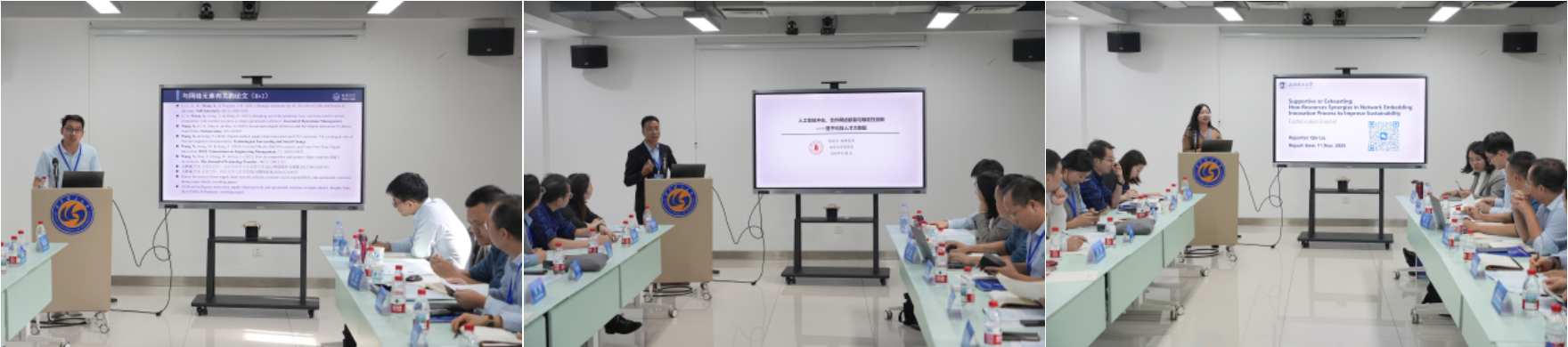 武汉理工大学创业学院刘勤教授围绕“Supportive or Exhausting: How Resources Synergize in Network Embedding Innovation Process to Improve Sustainability”主题展开交流。该研究聚焦新能源汽车行业,创新性地构建了“网络嵌入创新过程”系统框架,揭示了有限的财务与数字资源如何与网络嵌入的创新过程协同,从而提升企业可持续性的作用机制。