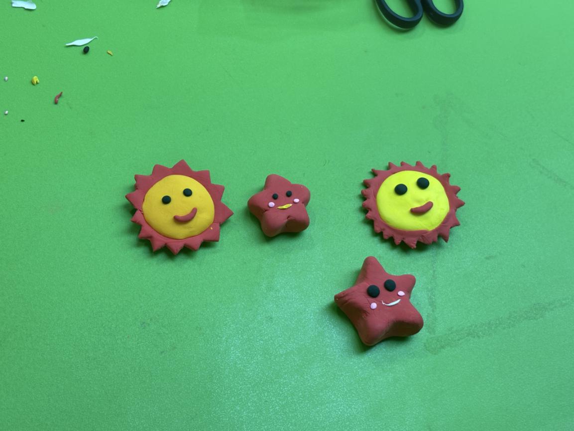 活动伊始,一位志愿者首先展示清晰的步骤图片,向学员们介绍了黏土制作的基本流程和技巧。在简洁明了的讲解后,志愿者亲自示范了“小太阳”和“小星星”的具体捏制步骤,从揉搓、塑形到细节刻画,每一步都耐心细致,迅速吸引了学员们的注意力,激发了大家的动手兴趣。