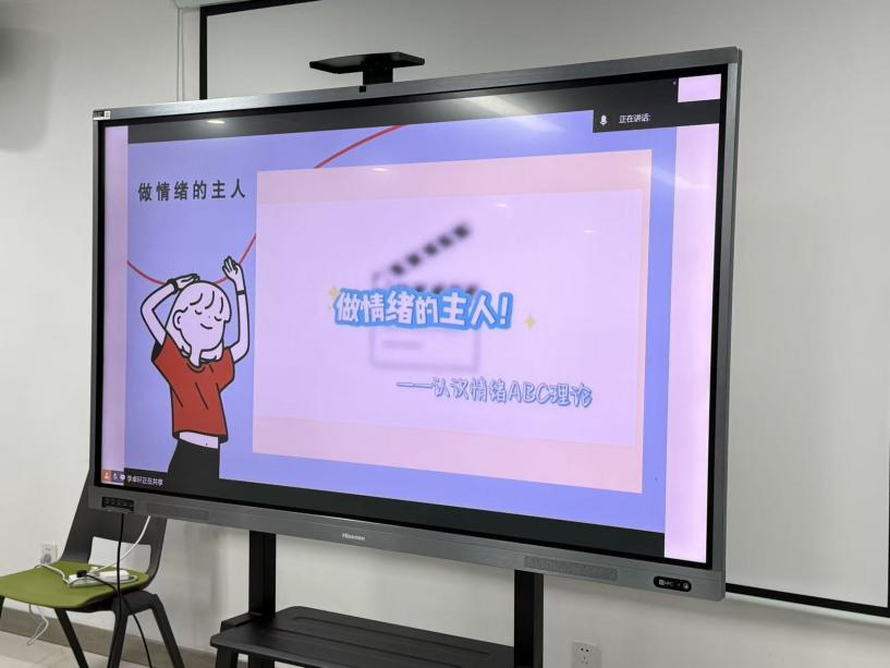 李卓轩同学首先向同学们讲解了情绪ABC理论这一合理情绪疗法的基本模型,并提出引起人们情绪困扰的不是事件本身,而是人们对于事件的认知和看法。通过改变人们对事件的不合理认知,进而改善人们的情绪和行为。她建议同学们在生活和学习中遇到影响自己情绪的事件时,要按照理性去思维、去行动,以改变对不良事件的认知和看法,从而调整好自己的心情。随后,同学们共同观看了由创研2301班部分同学创作的心理微电影《做情绪的主人》,该短片为同学们解决学习和生活中的问题和焦虑提供方法上的指引。