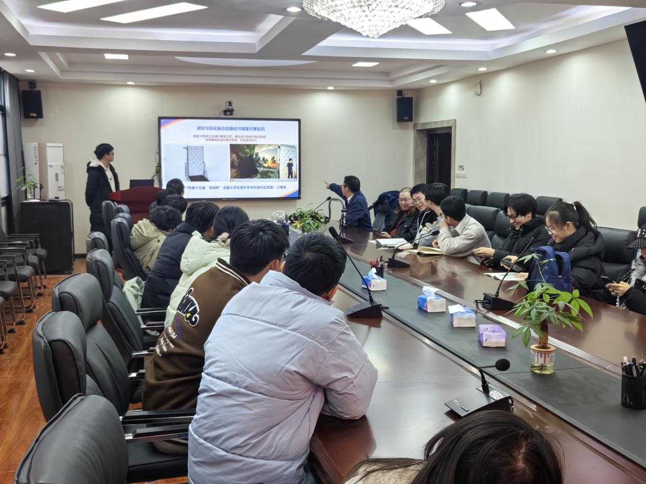 在交通与物流工程学院,陈昆老师和梅杰老师热情接待了来访师生,并系统介绍了学院近年来在各类高水平创新竞赛中的获奖成果。通过实物展示与讲解,学生们近距离观摩了包括仿生机器鱼、特种爬壁机器人、港口巡检机器人及VR沉浸式室内攀岩器在内的多项智能产品。两位教授围绕产品的设计理念、技术难点与创新价值进行了深入浅出的阐述,并分享了研发团队在项目推进过程中克服技术瓶颈、持续迭代优化的实践经历。学生们认真聆听、积极提问,对智能硬件的开发流程与实际应用有了更为具象的认知。