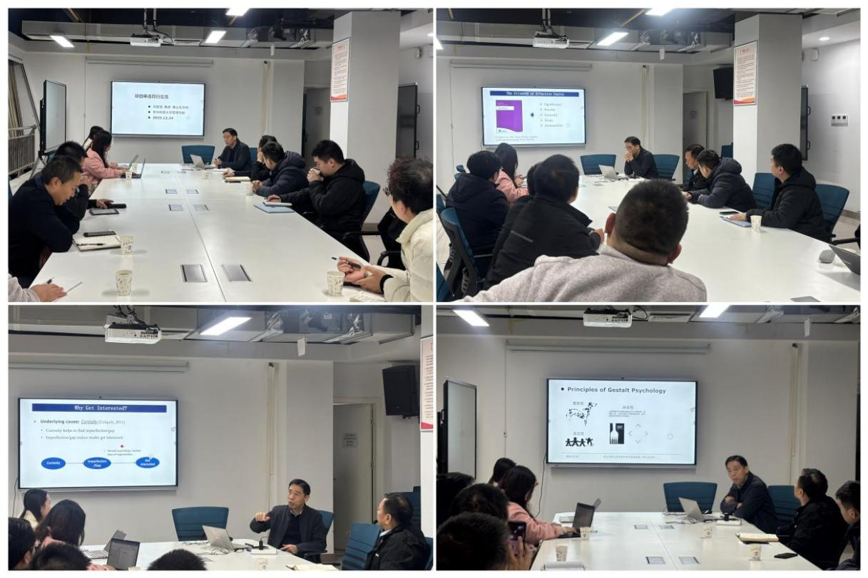 最后,学院副院长艾靓对刘智强教授的精彩分享致以诚挚谢意。他指出,刘教授的讲座内容详实、深入浅出且实操性强,不仅为学院教师提供了宝贵的基金申报指导经验,更对提升教师科研能力与项目申报水平具有重要指导意义。学院院长喻平随后作总结发言,他勉励全体教师以此次讲座为契机,认真学习借鉴刘教授的经验和建议,结合自身的研究方向和实际情况,认真撰写申报书,积极申报2026年国家基金项目。