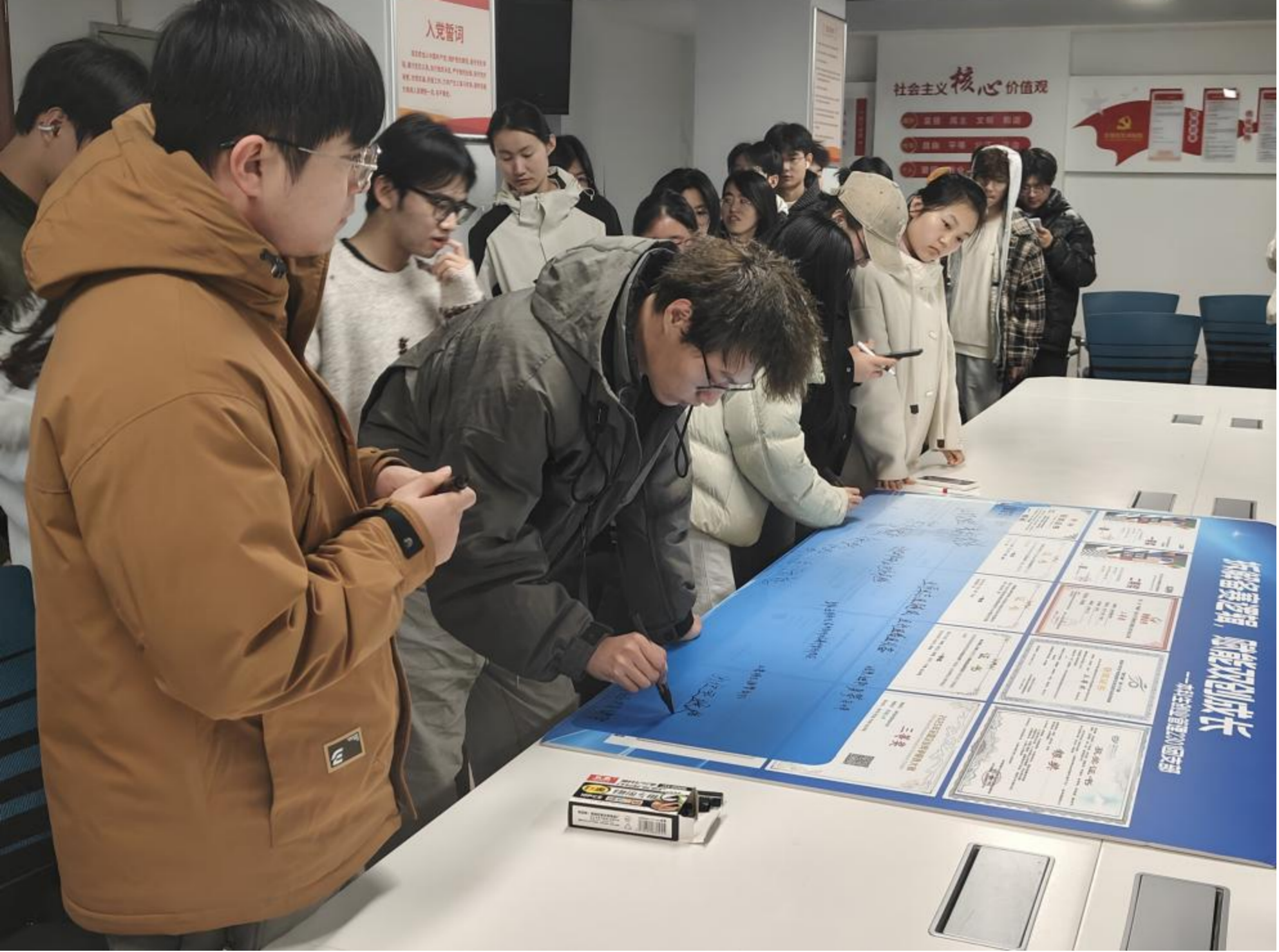 在核心分享环节,来自本科生创业管理2301团支部的3名国家级竞赛获奖同学作为分享嘉宾,结合自身参赛经历,从赛事全流程展开深度讲解。在“赛事精讲”模块,嘉宾聚焦选题组队、计划书撰写、答辩展示三大核心环节,拆解“如何发现真问题、挖掘创新点”“如何构建优势互补的团队”等关键问题,详解商业模式画布在计划书中的应用技巧与社会价值部分的撰写要点,分享PPT设计原则、路演礼仪及应对评委提问的实用策略,内容兼具理论高度与实践指导性。复盘从0到1的孵化过程,深入剖析项目亮点、避坑要点及优化方向,以具象化的案例帮助同学们直观理解备赛逻辑。此外,活动现场设置主题KT板,同学们纷纷在板上签到,并写下自己的竞赛未来目标,进一步凝聚了双创奋斗共识。